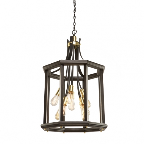 DESCRIPTION : This chandelier from the "Sandalwood Collection" has an authentic wood frame, encasing a black and satin brass interior body. Hand made in North America with pride. Many sizes available and also with optional brushed nickel interior.