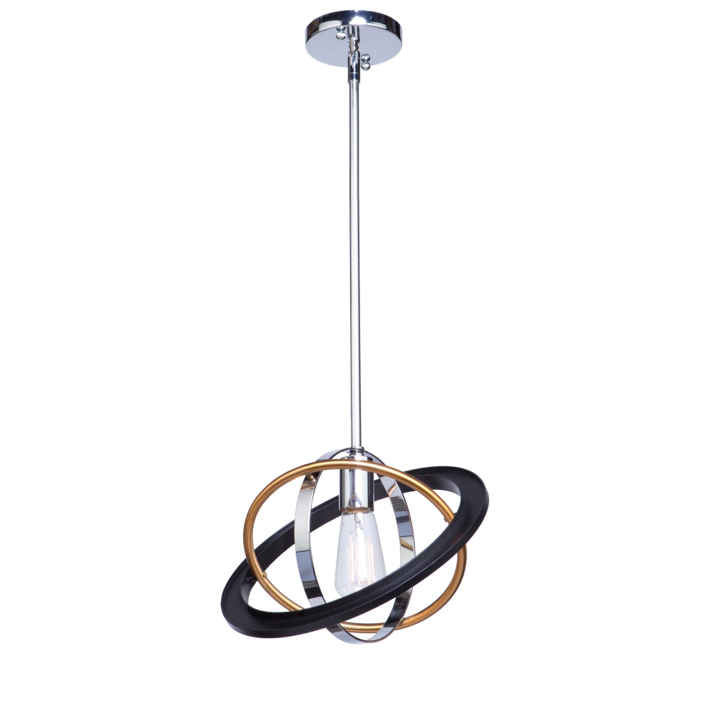 DESCRIPTION : The "Cosmic Collection" introduced by designer Cobi Ladner (CobiStyle) is definitely a trendsetter. It features a tri tone mixture of dark bronze, chrome and satin brass. The rings can be adjusted to a desired position. Many sizes available. (Comes with extra rods for height adjustment and hangstraight for sloped ceilings)