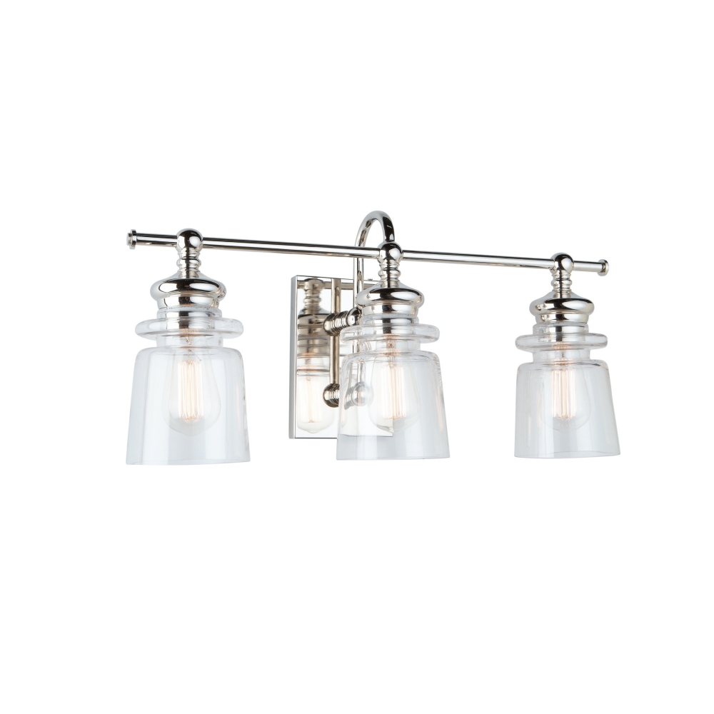 DESCRIPTION : Conçue par la firme de design Lighting Pulse, l'applique murale à 3 lampes pour salle de bain de la collection Castara propose une conception transitionnelle classique et nette avec un abat-jour en verre et un cadre en nickel poli. (Aussi disponible avec un cadre noir.)